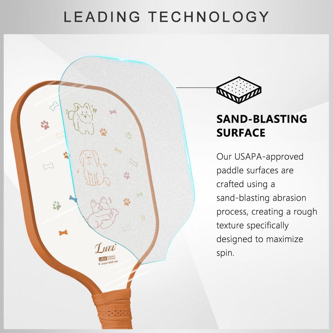 The cover of the Puppy Paddle is not just an image; it's a memory painted with love. 🐶✨ Once, the Luzz team discovered a stray puppy that, despite its struggles, touched hearts deeply. Though its time with us was fleeting, it left an indelible mark of hope and warmth during its last moments. 🌟💖 The paddle's design captures this spirit with bright and lively colors, etching the puppy’s joyous presence into the game of pickleball. 🎨🏓