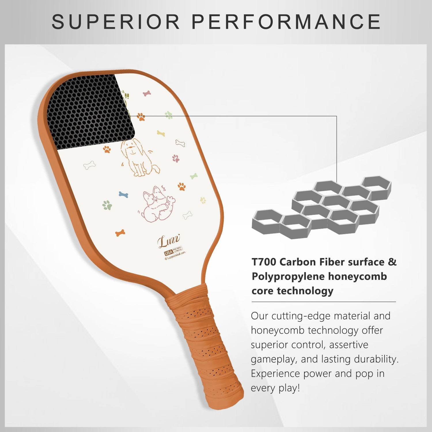 Meet the Luzz Puppy Paddle — a tribute to warmth, hope, and unmatched performance on the pickleball court. More than just a paddle, this artful piece tells a heartfelt story, commemorating the nameless puppy that once brought joy and inspiration to the Luzz team. With its vibrant and lively design, the Puppy Paddle stands as a symbol of compassion, urging us to extend kindness to all creatures, big and small.
