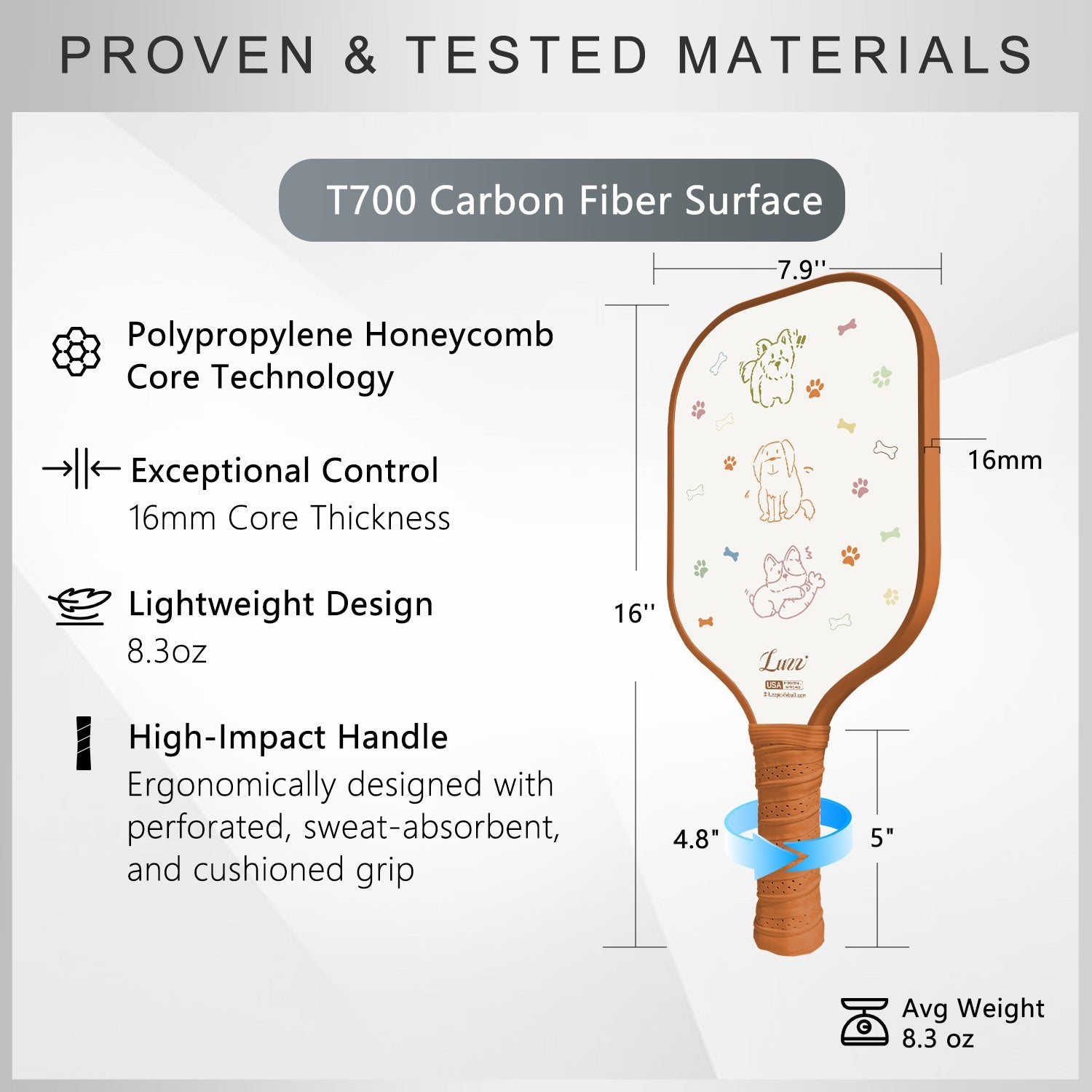 Luzzpickleball Puppy Original Paddle (16mm) T700 Carbon Fiber